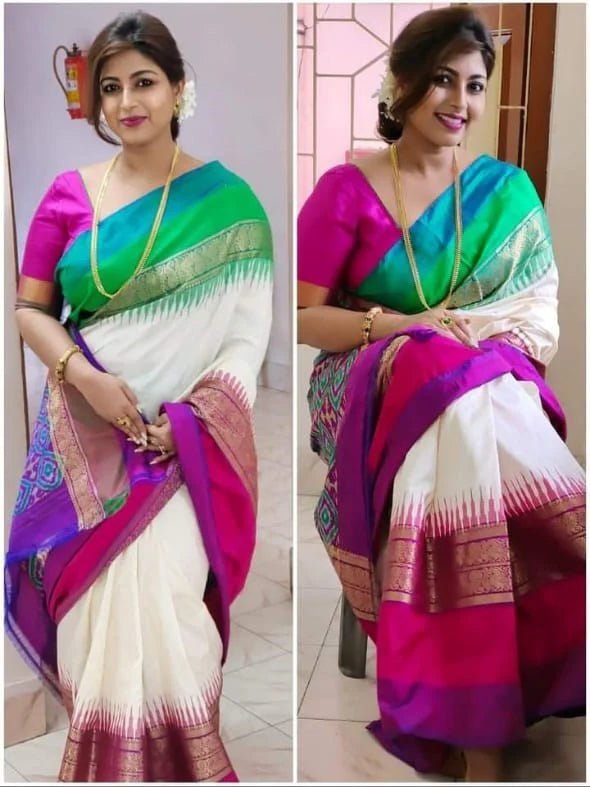 Ikkat is a Special type of Tie & die technique where the Silk threads are dyed with colors first and then woven into a saree.